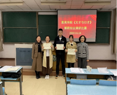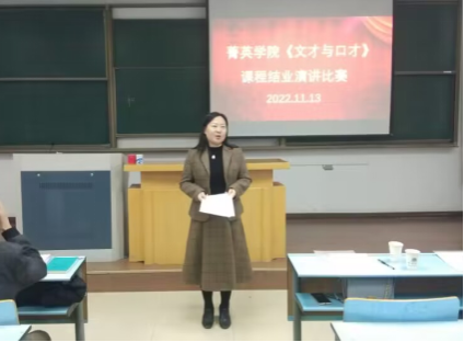 11月13日下午,2022年度菁英学院《文才与口才》课程结业演讲比赛在三江楼801顺利举办,该课程的教学及考核工作由永利23411集团(语言文化中心)教学团队承担。永利23411集团副院长、语言文化中心副主任余红艳,永利23411集团副院长周渡,永利23411集团徐光萍、谢佩佩老师,语言文化中心李红艳老师出席了本次演讲汇报比赛并应邀担任评委。