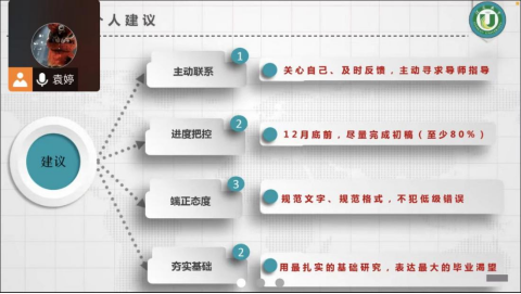 12月9日下午,研究生培养中心先后面向2020级、2021级研究生召开了中期检查和学位论文开题两场反馈会,会议以线上线下相结合的形式举行。余红艳副院长根据专家学者意见,对中期检查过程中存在的表层问题与深层问题进行了剖析。表层问题包括论文完成比例低、教学实践部分空缺、对研究资料堆砌而未见整理分析、核心概念不清等问题。深层问题包括选题有待商榷,未得到专家一致认可;对于学位论文投入不足,不能很好的平衡毕业与就业;部分同学科研能力有限,在学术能力、学术用语、学术规范等方面需要进一步完善。余院长提醒大家需主动寻求导师支持,及时与导师沟通,抓紧时间就专家意见对论文进行修改完善,以便充分迎接接下来的预答辩环节。