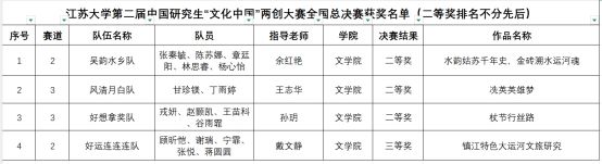中国研究生“文化中国”两创大赛是国内首个面向文科研究生的国家级创新实践公益赛事,本届大赛以“赓续中华文脉、坚定文化自信”为宗旨,由教育部学位管理与研究生教育司指导,中国学位与研究生教育学会、中国科协青少年科技中心共同主办,天津师范大学承办。本届大赛共吸引来自443所高校的5398支队伍报名,提交有效作品4589件。经严格评审,283支队伍晋级全国总决赛,竞争激烈。我院获奖作品主题涵盖大运河文化、英雄叙事、文旅融合等领域,凸显了跨学科融合与实践导向的创新特色。