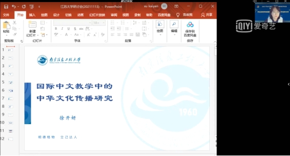 徐开妍重点探讨了国际中文教学当中的江苏区域文化推广与传播,就区域文化传播的可行性和必要性,江苏区域文化的特点和优势,江苏文化对外传播的现状,以及发展以及江苏文化的传播机制等方面作了深入分析。李红艳分享了永利23411集团线上汉语教学的实践经验,对永利23411集团汉语教学基本情况、教学云平台、学生学习方式、教师授课技巧与形式等诸多方面进行了详细介绍。