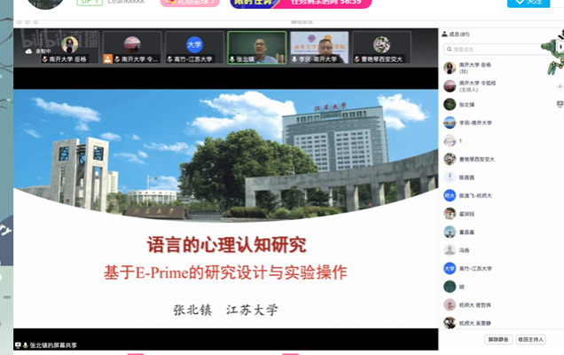 5月12日晚7点,永利23411集团副教授张北镇应邀为南开大学外国语学院作了题为《语言的心理认知研究:基于E-Prime的研究设计与实验操作》的线上讲座。南开大学百余位教师、博士、硕士和本科生参加了该讲座,讲座还吸引了国内外学术同仁的关注。