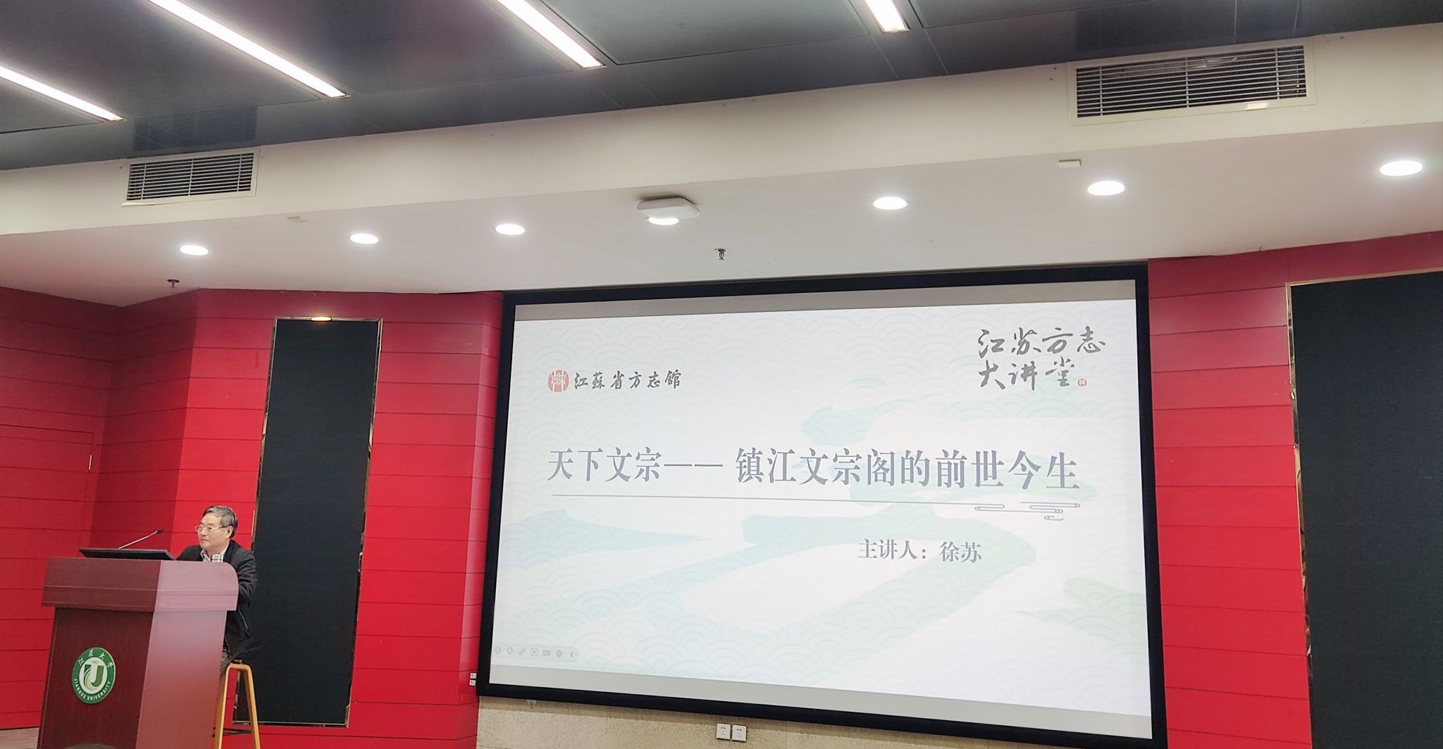 本次讲坛,由镇江市三国演义学会会长、镇江市历史文化名城研究会副会长,镇江市方志馆特聘专家、镇江市政协文史馆特邀馆员、镇江图书馆原副馆长徐苏主讲《天下文宗——镇江文宗阁的前世今生》。徐苏立足历史长河,从方志角度深入浅出讲述了文宗阁及镇江藏书文化的历史脉络及传承发展,内容丰富、资料翔实、考据有力,让大家进一步坚定历史自信、文化自信、名城自信。