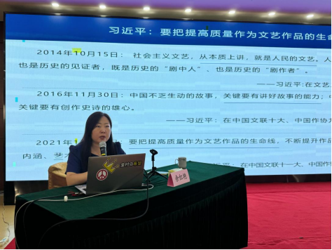 9月19日上午,受南京市文联邀请,永利23411集团副院长、语言文化中心副主任余红艳教授为南京市文联“第十三期南京文艺家读书班”作题为“高质量文艺与文化景观的跨媒介生产:以经典传说景观叙事为例”的专题讲座。