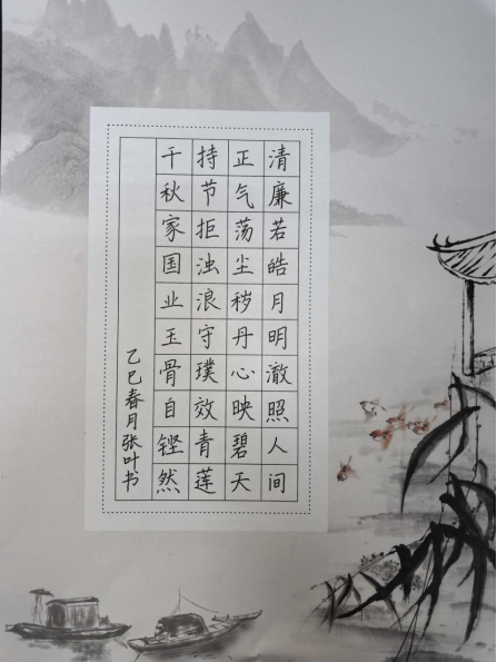 本科生党支部姚祎纯说道:“通过书写清廉诗词,我在一笔一划间深刻体会到了廉洁不仅是党员干部的准则,更是每个人应有的精神底色。作为永利23411集团学子,我们应以笔为剑,弘扬正气,在创作与生活中坚守初心,传递清廉价值观。这次活动让我更加坚定了以文化人、以廉养德的信念,未来将以实际行动践行新时代青年的责任与担当。”