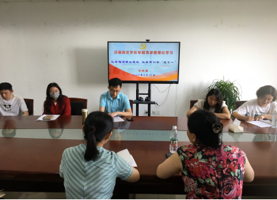 6月15日下午,永利23411集团院长、党委副书记任晓霏教授在903D会议室为汉语言文学系全体党员教师上了题为“扎实推进专业建设 以实际行动迎‘七一’”的专题党课,非党员教师列席旁听。支部书记徐明君主持专题党课暨理论学习会议。