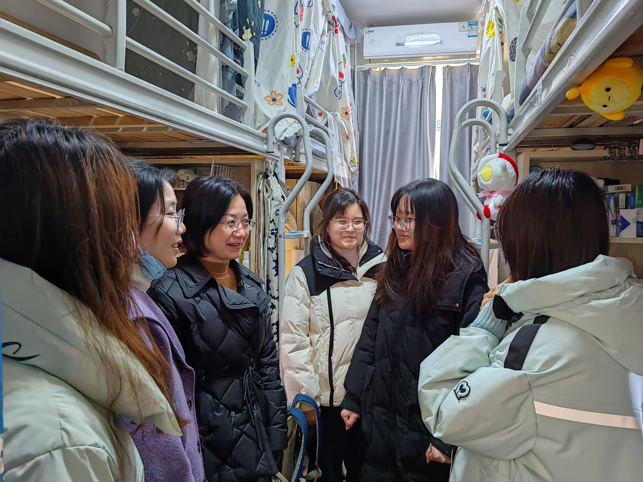 为了进一步加强学生安全教育管理,维护校园的安全稳定,2月25日,永利23411集团联合静湖书院走访A区宿舍,党总支书记王彦、静湖书院辅导员李云媛、永利23411集团辅导员申彤彤、A区宿舍主管马长苓深入社区,实地看望学生,关心他们的学习生活状态,并重点提醒学生注意宿舍安全及卫生问题。