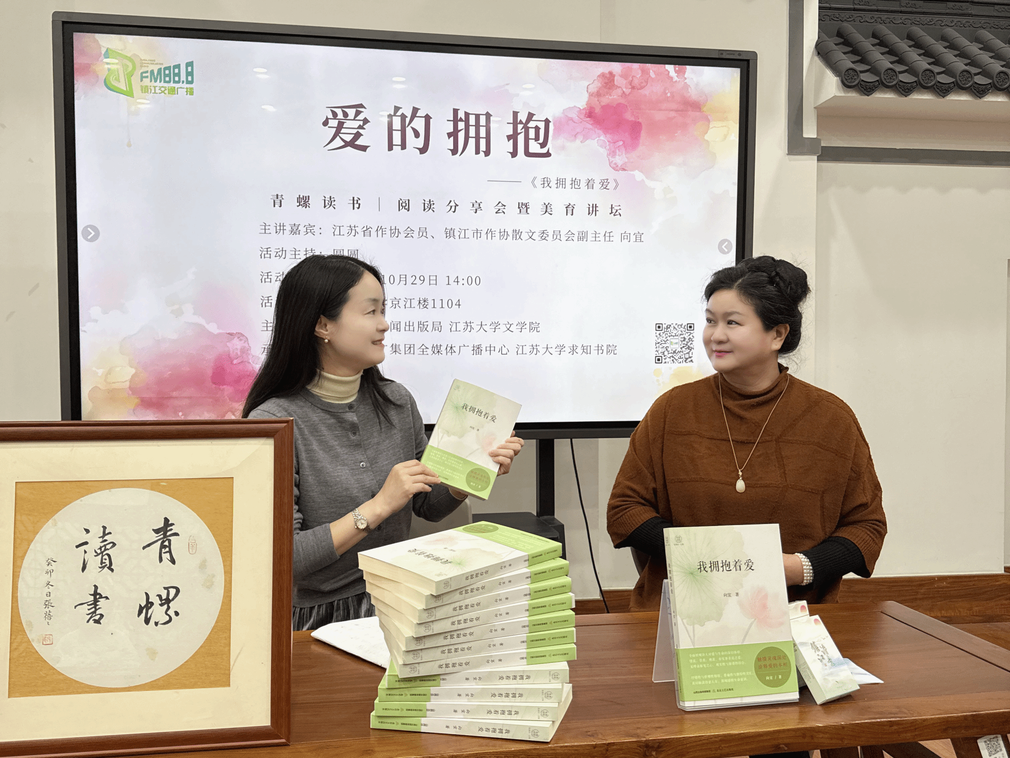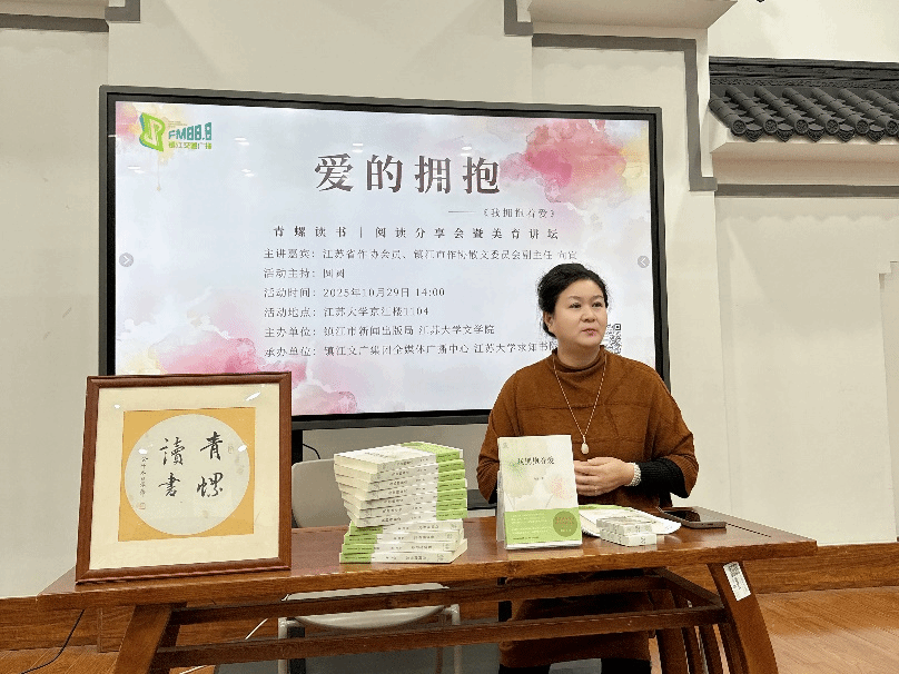 10月29日,永利23411集团联合镇江市新闻出版局、镇江文广集团全媒体广播中心、求知书院举办的“爱的拥抱”青螺读书阅读分享会暨美誉讲坛在永利23411集团京江楼1104举行。镇江交通广播《青螺读书》主持人圆圆主持,永利23411集团关工委老同志李金坤、辅导员申彤彤、永利23411集团学生代表参加。