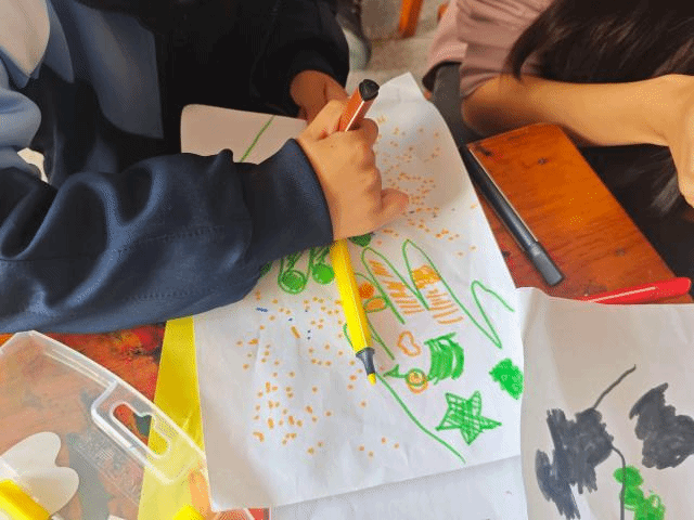 本次活动分为两个部分。第一部分为“手掌绘画”。志愿者一对一地坐在孩子身边,在主持人的协助下,耐心引导孩子们描绘手掌轮廓,并创意地填涂颜色和图案。第二部分为“制作爱心花”。志愿者与孩子们齐心协力,一同将普通的彩纸制作成可爱别致的爱心小花,创作出一个个独一无二的作品。在制作过程中,志愿者悉心陪伴并给予鼓励与帮助,孩子们充分发挥动手能力和想象力。在活动的最后,志愿者与孩子们合影留念,记录这美好时刻。