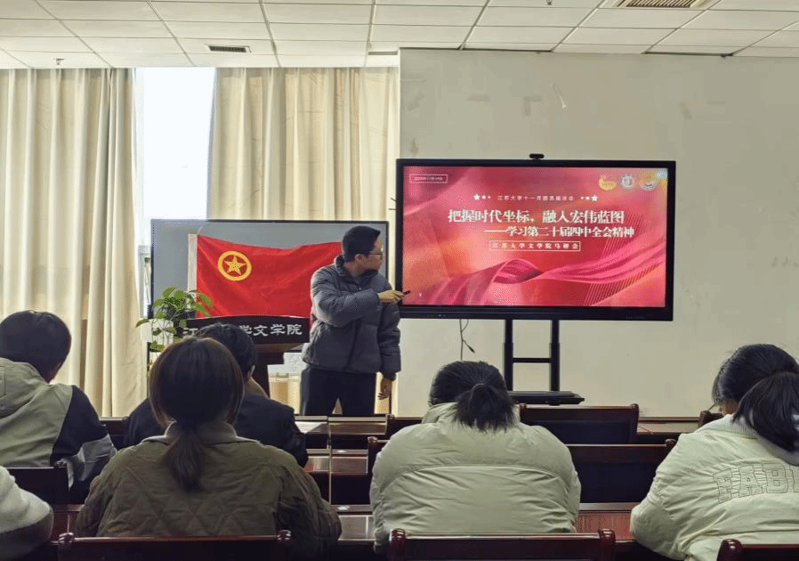 11月19日下午,以“把握时代坐标,融入宏伟蓝图”为主题的永利23411集团十一月团员座谈会在三江楼901B举行。本次活动由马研会部长陈嘉祺主讲,马研会成员参加,围绕党的二十届四中全会精神开展专题学习与交流。