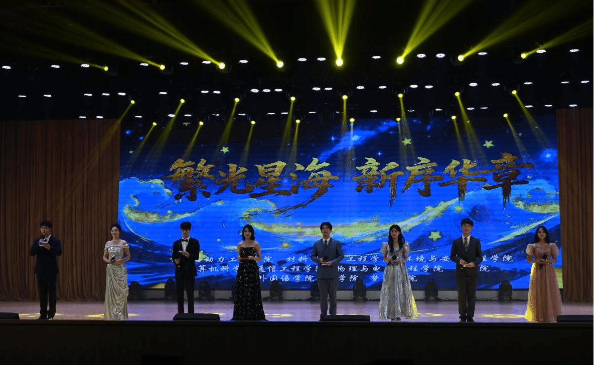 11月8日晚,永利23411集团联合能动学院、材料学院、环安学院、计算机学院、外国语学院、物电学院、医学院及梦溪学院,于大礼堂正式举行“繁光星海,新序华章”联合迎新主题晚会。晚会邀请各学院党委书记、团委书记及辅导员作为嘉宾,由九院学生会主席联合统筹,筹备团队经数月精心筹备,呈现了丰富多样、精彩纷呈的节目,现场观众反响热烈。本次晚会共分四个章节,通过歌曲、舞蹈、相声等多元形式呈现了一场视听盛宴。