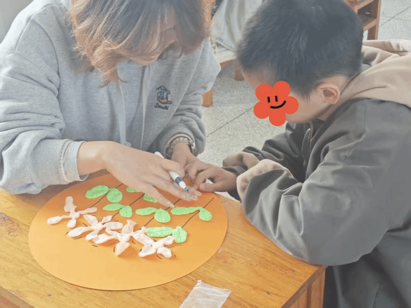 心手相牵,温暖相伴。本次活动通过“黏土画“和“撕纸画”两种方式,锻炼了孩子们的动手能力和自主能力,同时搭建起大学生志愿者与特殊儿童沟通的桥梁。孩子们以纯粹童真打动志愿者,志愿者们则用细心陪伴温暖童心、展现青春风采,让社会主义核心价值观在实践中落地生根。
