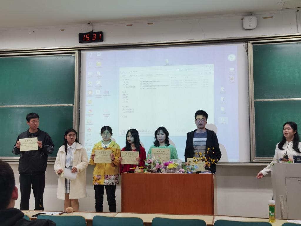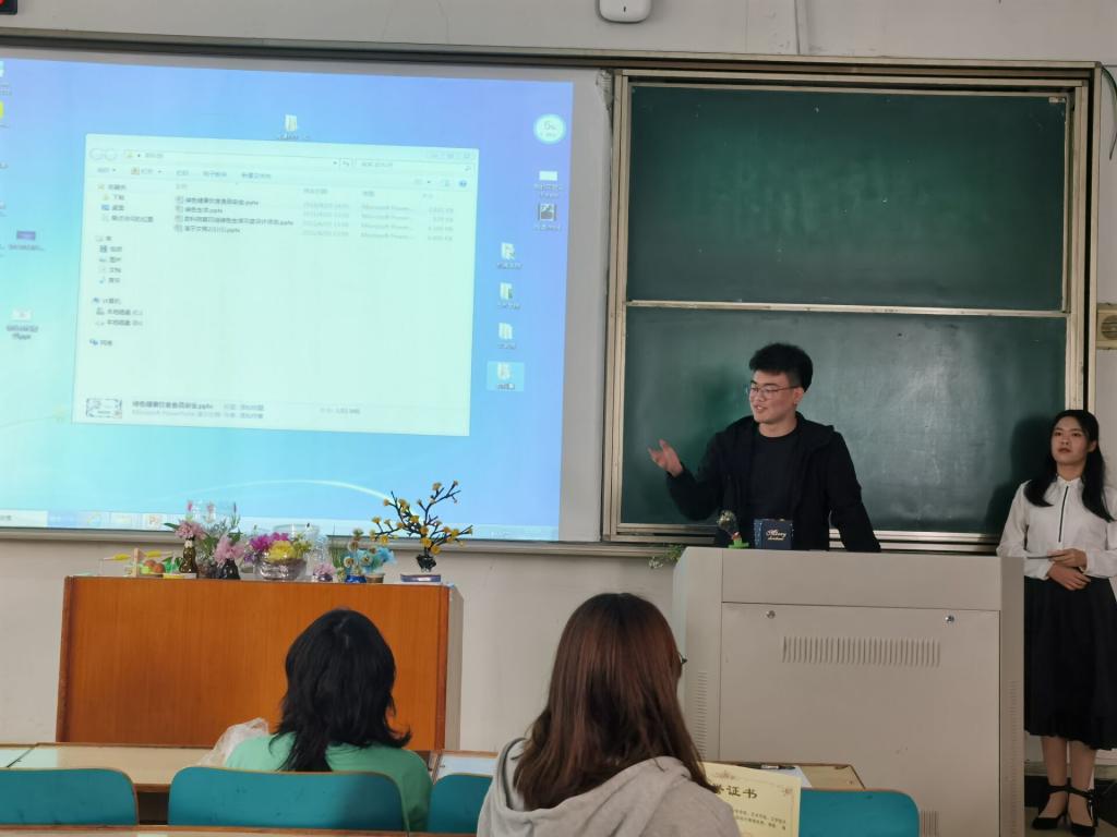 在各组抽签决定展示顺序后,主持人宣布活动正式开始。首先,主持人强调了此次活动节能减排的宗旨及动手创新的理念。随后,各组依次进行实物展示,并以PPT的形式向大家阐述设计理念与创新思路。接着,评委对各个作品的美观度、实用度、创新性等方面进行评估,工作人员汇总各小组最终得分。最后,评委对设计新颖、创意丰富的作品着重点评,主持人公布获奖名单。