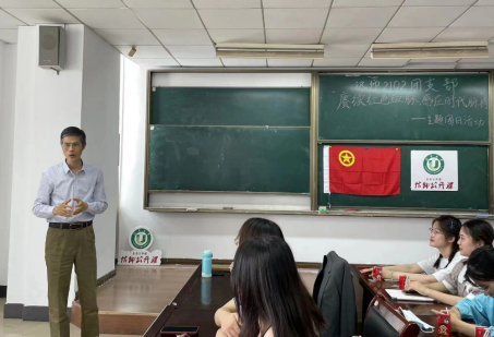 本次主题团日活动分为室内团日和户外实践两个部分。室内团日活动邀请到永利23411集团副院长周渡莅临指导。活动伊始,主持人解读习近平总书记考察人民大学时重要讲话精神的丰富内涵和意义。周渡院长也就个人学习工作经历,讲述了自己对于习近平总书记提出的“为谁培养人、培养什么人、怎样培养人”教育根本问题,为汉师学生未来的工作道路提供了宝贵经验。然后以“击鼓传花”的方式进行党团知识竞答,同学们在紧张刺激的游戏中学习理论知识,巩固思想根基。活动中还进行了以习近平语录为主要内容的板书大赛,由周渡院长作为主要评委评分。最后师染卡制作,周渡院长与同学们一齐参与其中。户外实践是由支部部分同学排演的“百年青春从未老去,归来仍是翩翩少年“红色话剧,在勤人谷成功出演。“智慧启迪,梦想启航”茶话会也在梅园成功开展。最后,同学们一起创作了“赓续红色血脉,感应时代脉搏”主题的诗歌、海报、漫画、书法作品。