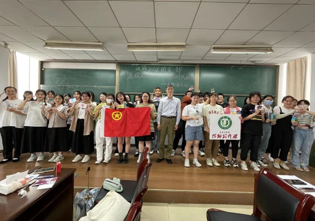 习近平总书记4月25日在中国人民大学考察调研时发表的重要讲话立意高远、视野宏大、思想深邃、内涵丰富,是习近平新时代中国特色社会主义思想的重要组成部分。汉师2102团支部特此于2022年5月22日三江楼901B开展“赓续红色血脉,感应时代脉搏”主题团日活动,学习习近平总书记重要讲话精神,进行党团史专题教育,完善团员青年的思想道德建设,丰富理论知识。