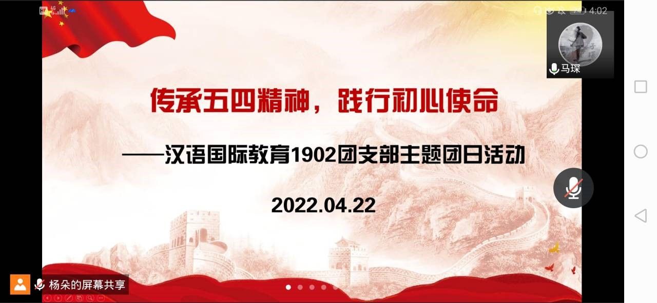 为更好地引领广大团员青年继承和发扬“爱国、进步、民主、科学”的五四精神,以青春之我创青春之国家,为实现中华民族伟大复兴的中国梦而不懈奋斗,汉教1902支部于4月22日开展“传承五四精神,践行初心使命”主题团日活动,汉教1902全体学生参加了本次活动。