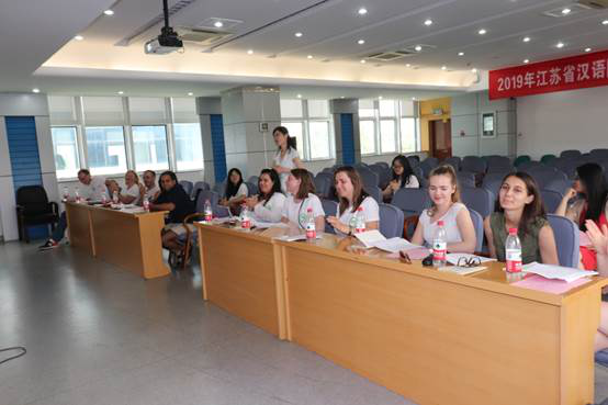 第一天早晨,在享受过丰盛的早餐后,学生们满怀期待地来到了教室,开始来中国后的第一节汉语学习,语言文化中心的唐老师教学经验丰富,教学由浅入深,首先通过拼音教学检测出学生的汉语水平,进而因材施教,照顾到每一位学生;她以日常生活用语为例,教授了学生多种句式,学生们听得聚精会神;老师的教学互动性极强,学生参与度较高。简短的第一节课程结束后,每个人竟然都能用汉语进行自我介绍,包括用较长的句子介绍自己的兴趣和爱好;最后进入同学们最喜欢的环节,老师现场教授经典歌曲《甜蜜蜜》,她中英对照,让学生了解歌词的含义,随后分组对唱,提高同学的积极性,同学们的进步十分明显,在老师的教导下,第一次接触汉语的同学都能流利大声地歌唱,每个人脸上都洋溢着自信快乐的笑容。 午后,同学们有的在志愿者的引导下深入体验永利23411集团校园文化,有的小憩片刻,随即开始了下午的西津古渡与长江栈道的游览。学生们漫步在江南古渡,对中国文化产生了浓厚的兴趣,通过带队老师对渡口历史的讲解,他们明白了镇江三千年历史文化的积淀,通过参观古巷,他们感受到了中国传统文化的魅力,在体会到“两三星火是瓜州”的意境后,他们在张祜铜像前合影留念。随后,带队老师带领他们体验中国独特的戏剧文化,引起了学生的强烈反响,为接下来的戏曲教学打下良好基础。随后,大家来到了北固山旁的长江栈道,同学们纷纷被眼前这“潮平两岸阔,风正一帆悬”的滚滚长江所吸引,纷纷拍照留念。