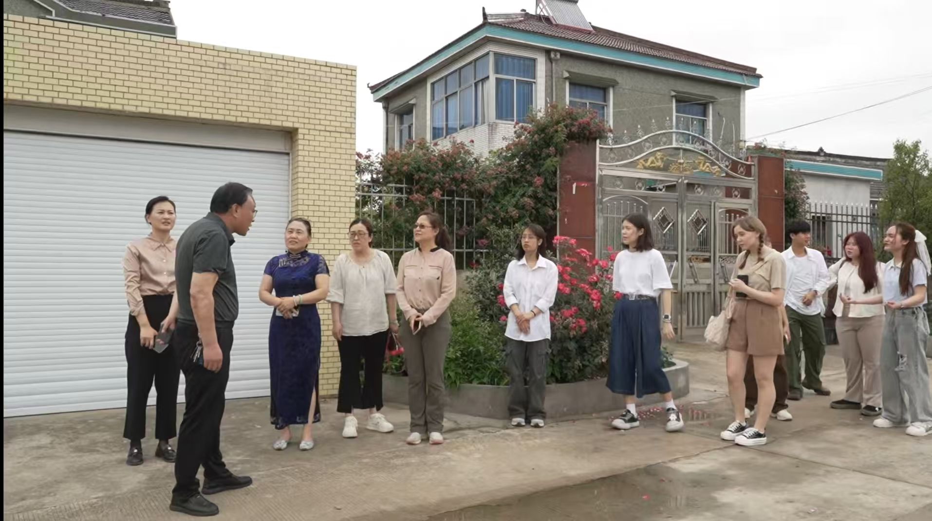 The first stop of the research was Dingjiao Village. Also known as Jinjiao and Dinglu, the village’s name hides a fascinating legend. In ancient times, a woman was washing yarn by the river when a golden ox suddenly charged at her. In a panic, she hit the ox’s horn with a wooden mallet, and the golden ox fled, leaving behind a glittering golden horn—thus the name "Dingjiao" came into being. Wandering around the village, the Tongji River flows gently, and the time-honored residential houses and distinctive buildings quietly tell stories of the years. With the explanation of the village Party Secretary, international students experienced the unique charm of this millennium-old village in an immersive way.