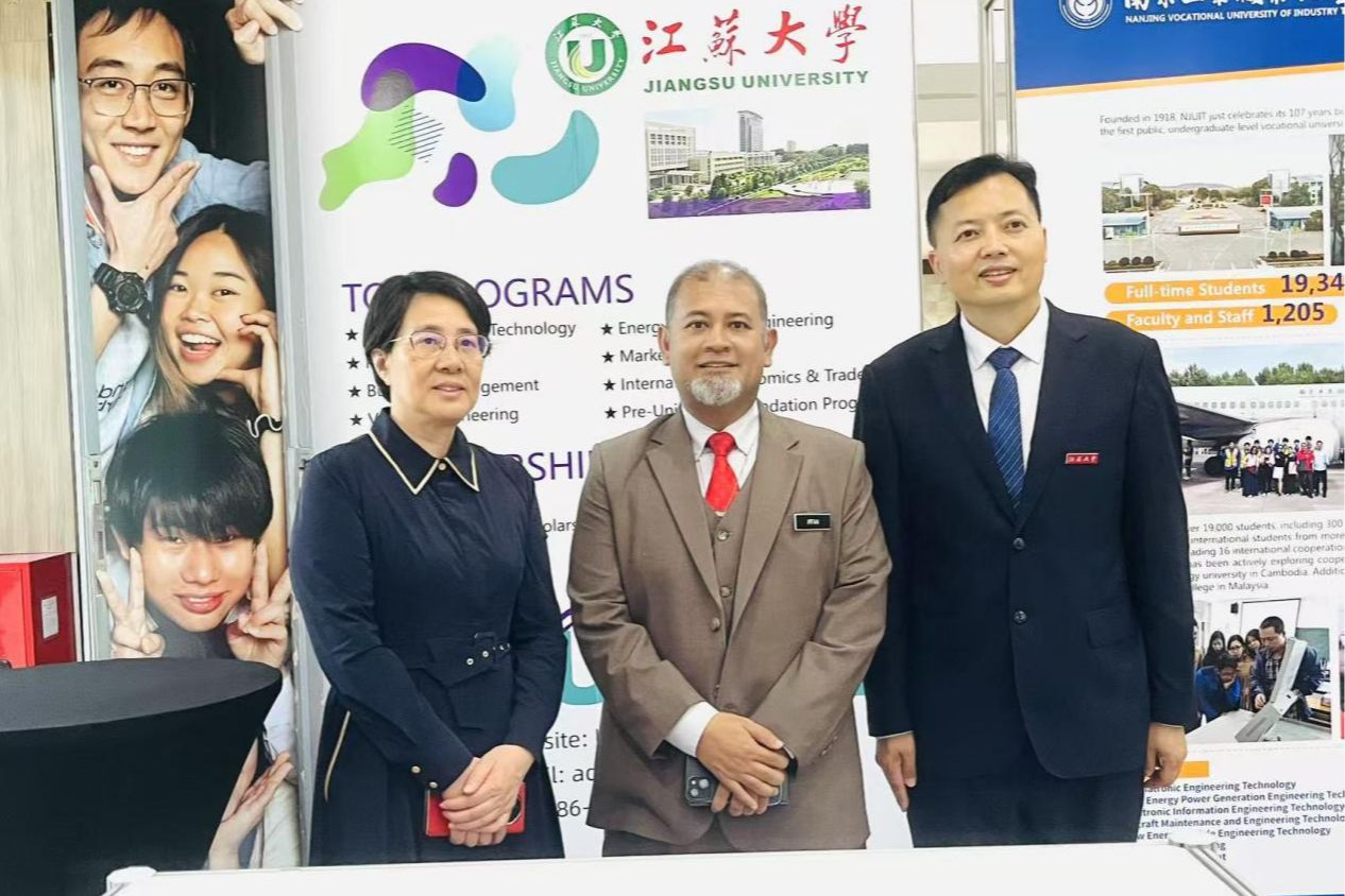 From May 18 to 24, President of Jiangsu University (JSU) Prof. Xing Weihong and her delegation accompanied the Jiangsu Education delegation to Malaysia and Cambodia, attending "Jiangsu-Malaysia University Cooperation and Exchange Activity and Study in Jiangsu Exhibition", which was hosted by the Jiangsu Provincial Department of Education and the Malaysia Education Exchange Association. The visit focuses on three major themes: "international cooperation in disciplines and industries", "cultivation and introduction of high-level talents", and "university-enterprise cooperation in going global and building student bases", promoting the implementation of JSU's open education advancement initiative and injecting new momentum into Jiangsu Provincial education opening up to the outside world.