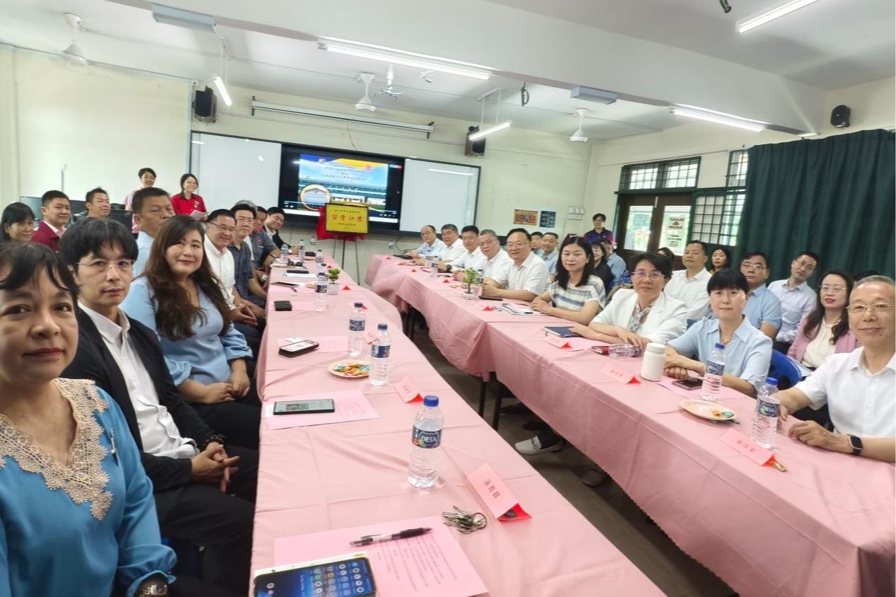 On May 18, the Jiangsu Education Delegation held a meeting on the source of international students at the Chinese National High School in Malacca, Malaysia. At the meeting, the delegation had discussion and exchange with Malaysian alumni once studying in Jiangsu Province and the local high school principals, and listened to their opinions and suggestions on the education of foreign students in Jiangsu Province. President Xing Weihong introduced the JSU's international education cooperation, overseas Chinese language education, and the situation of Malaysian students studying in China. Principal of Peifeng Middle School in Malaysia Huang Shelley, a partner of JSU, participated in the exchange.
