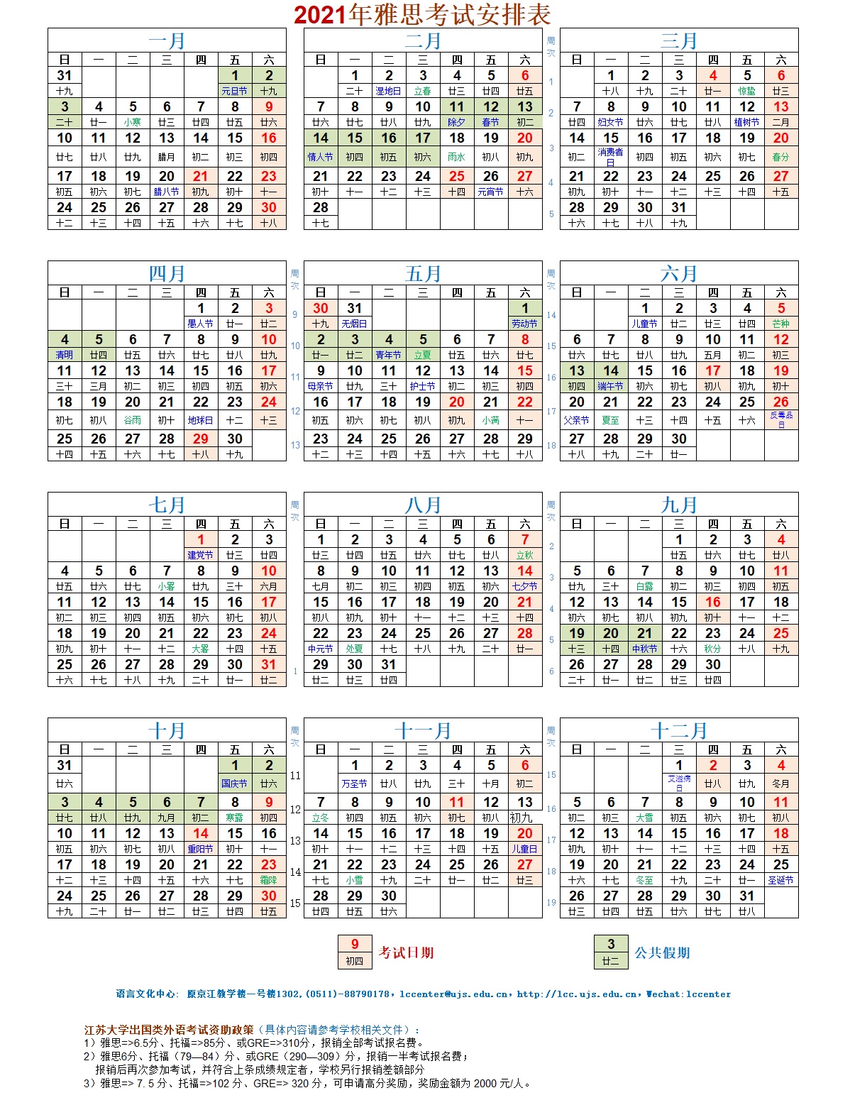 IELTS Schedule for 2021